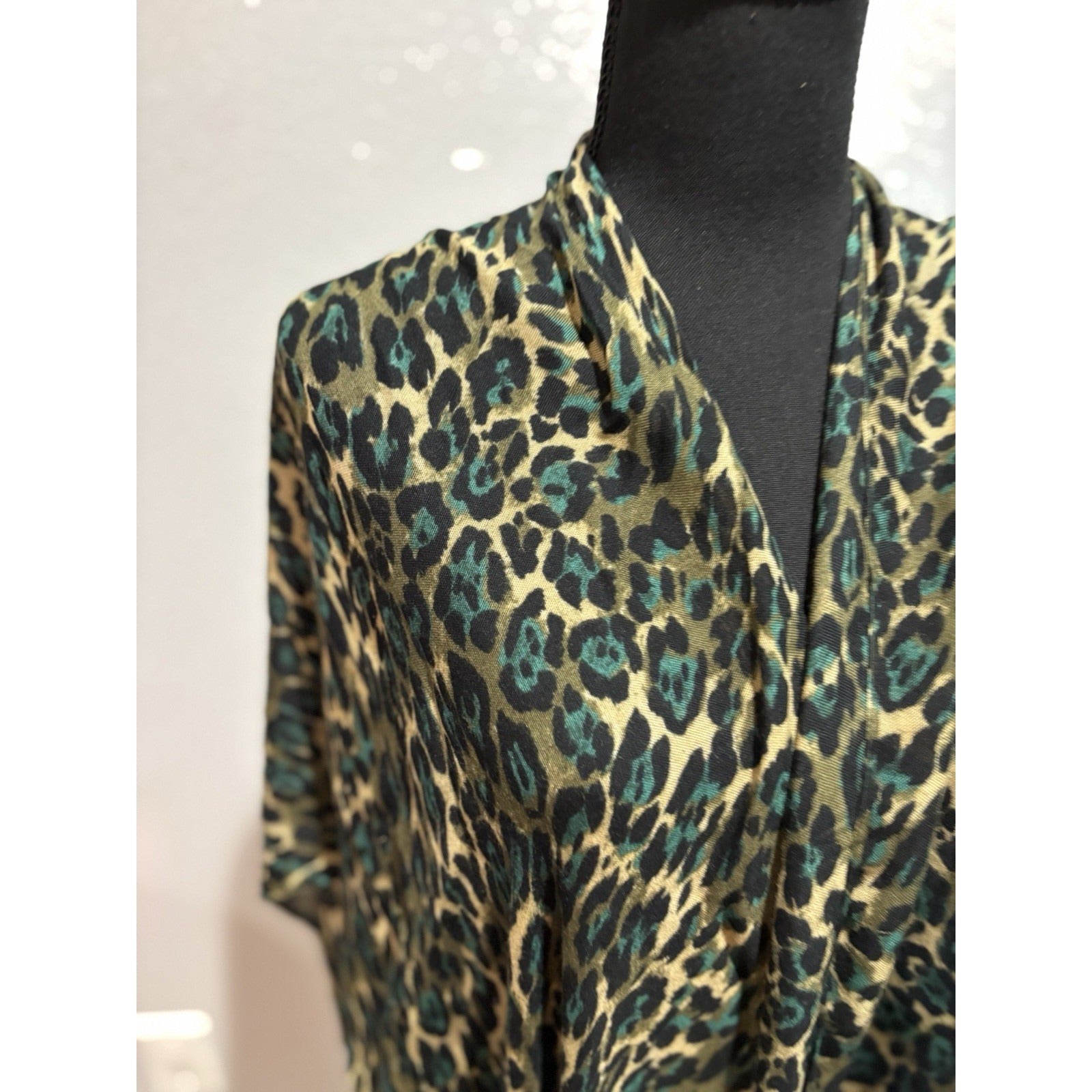 The Established 1946 Green Leopard Kimono is a stylish and colorful women's top designed in a one-size-fits-all silhouette. This versatile kimono, perfect for adding a pop of personality to any outfit, features a bold green leopard print in a regular fit. With its unique style and vibrant design, this kimono is sure to make a statement and stand out in any wardrobe. Perfect for those looking to add a touch of fun and flair to their look.