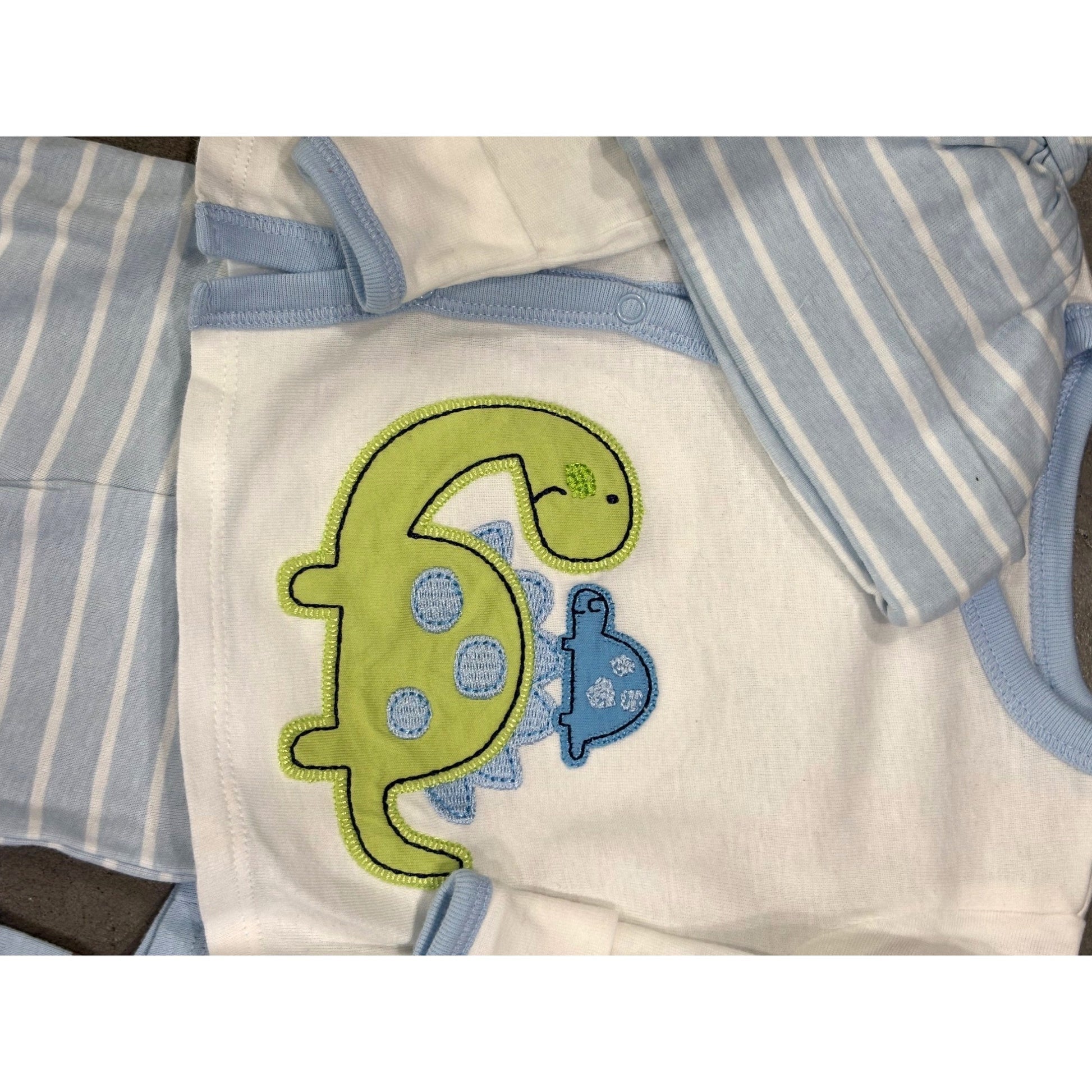Adorable pajama set featuring playful dinosaur and monkey designs. Includes two long-sleeve tops, matching pants, and cozy hats. Soft and gentle on baby's skin.