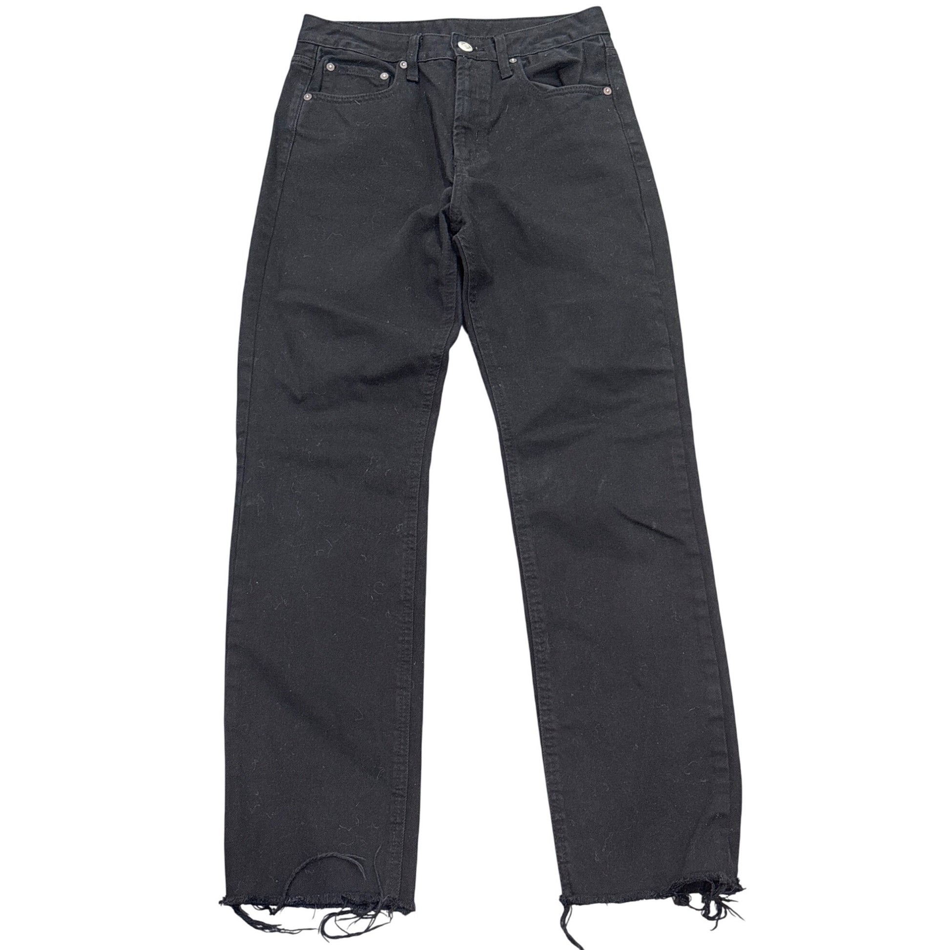 These classic black denim jeans bring effortless cool to your wardrobe. With a lived-in look and raw hem detailing, they're perfect for creating that laid-back, edgy outfit that feels both comfortable and stylish.