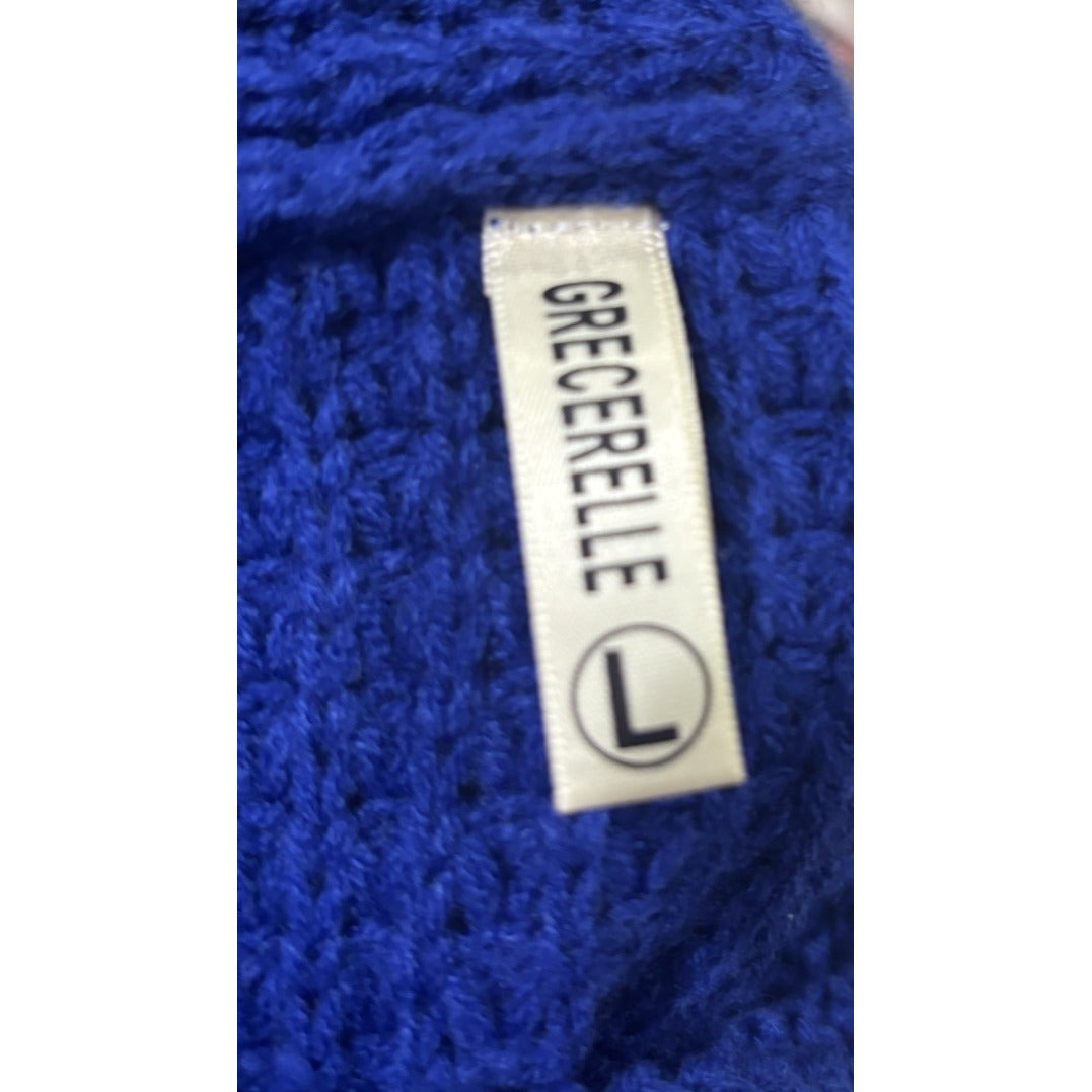 Grecerelle Cowl Neck Sweater Women’s M Navy Chunky Knit Large Button Cozy