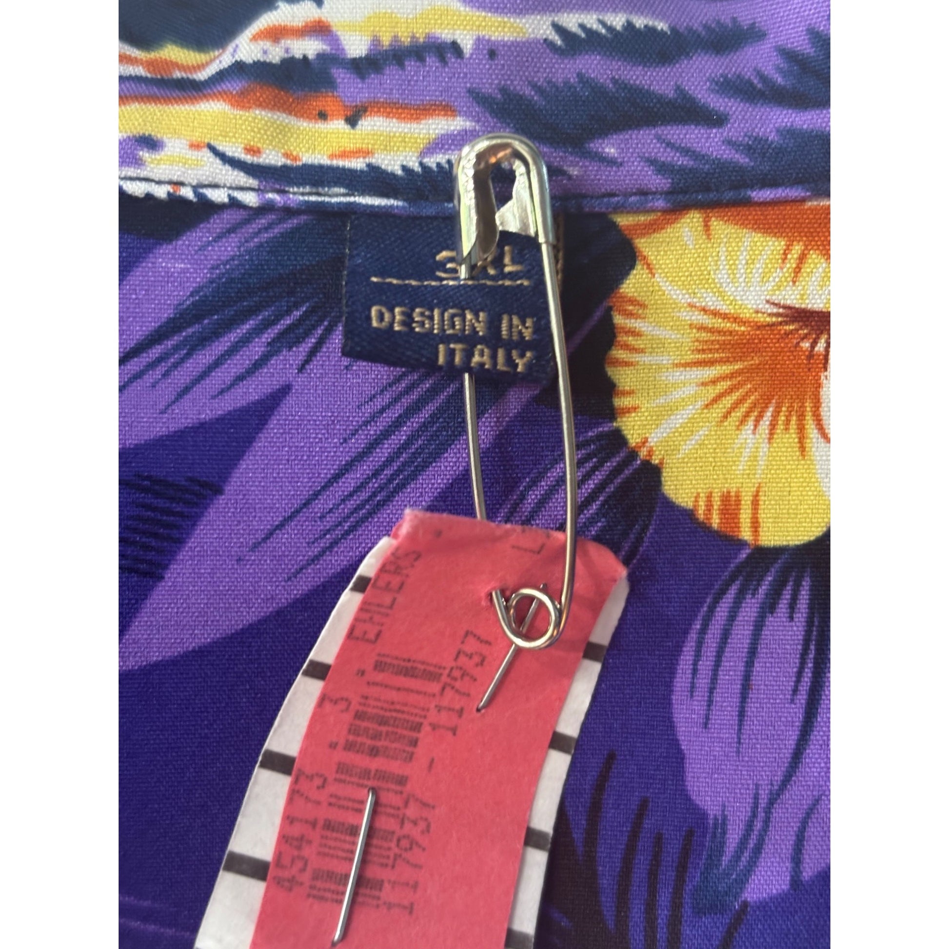Hawaiian Style Button-Up Shirt With Colorful Tropical Print Short Sleeves Size Large Made In Italy