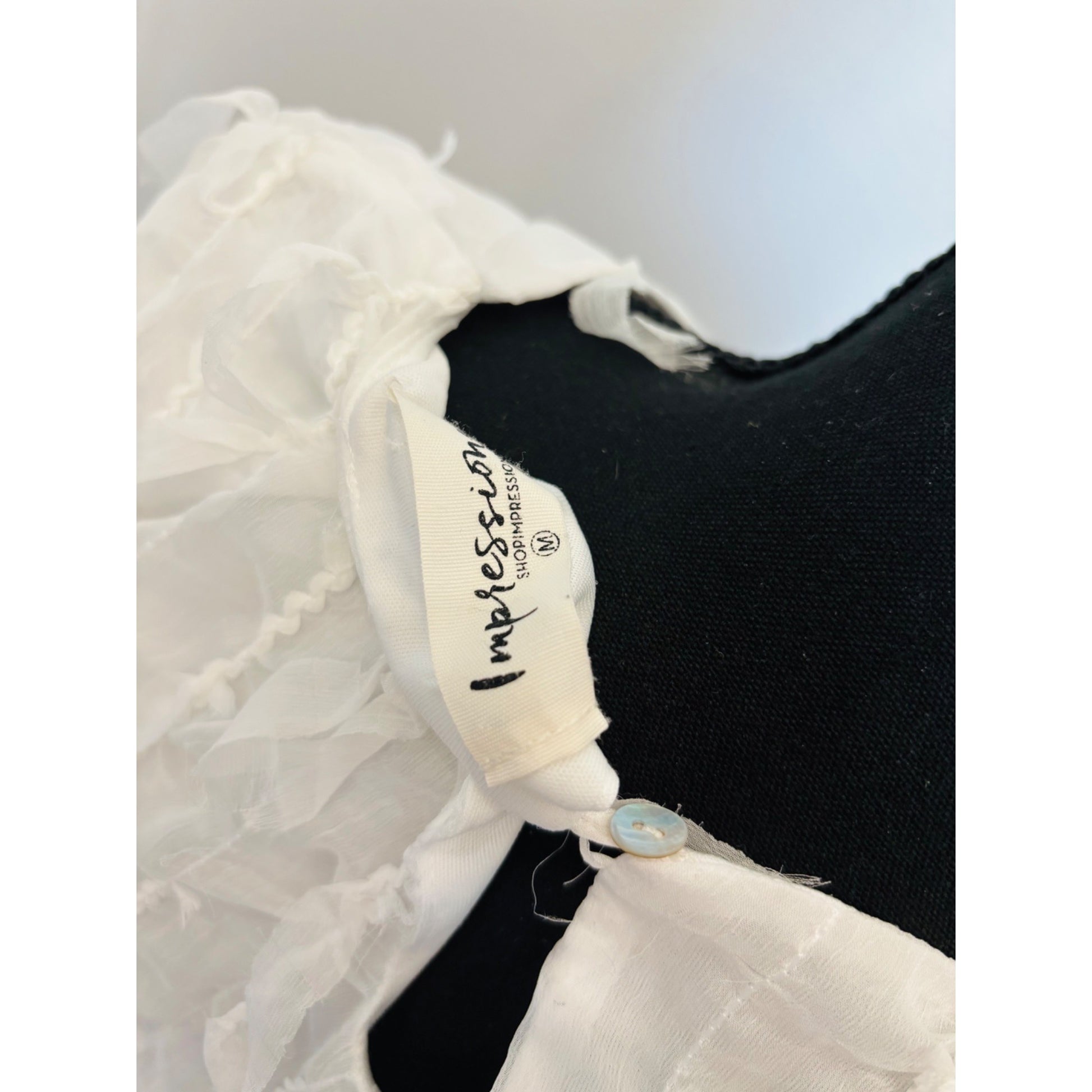 Impressions woman’s White Textured 3/4 Sleeve Blouse - M
