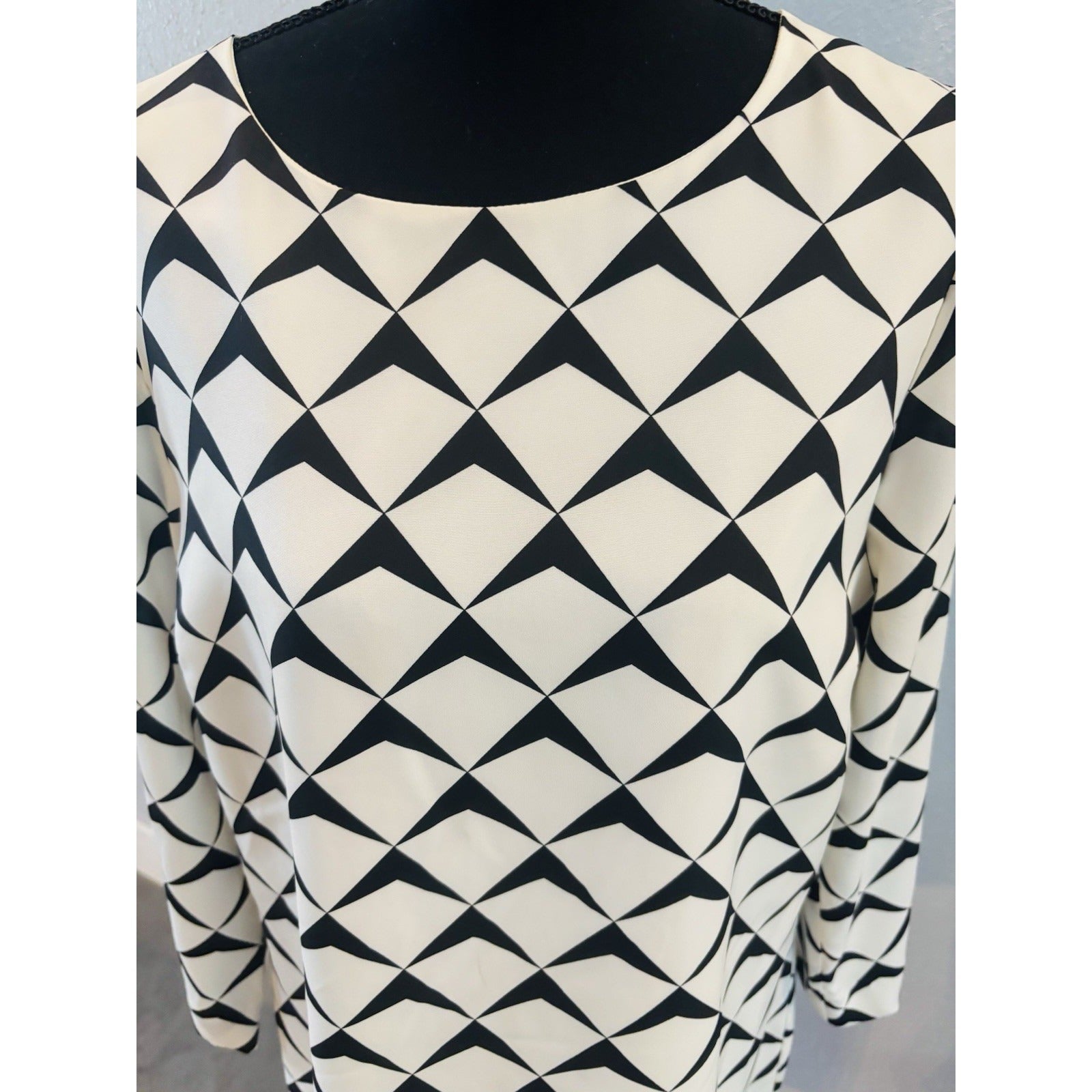 The J.Crew Women's Long Sleeves Dress in size 12 features a stylish boat neck design and knee-length silhouette, making it suitable for various occasions from casual to formal. The geometric pattern and multicolor fabric add a touch of interest to the shift dress, while the long sleeves and button closure offer a sophisticated and polished look. Made from polyester and designed by J.CREW, this dress is a versatile and chic addition to any wardrobe, perfect for the summer, fall, or spring seasons.