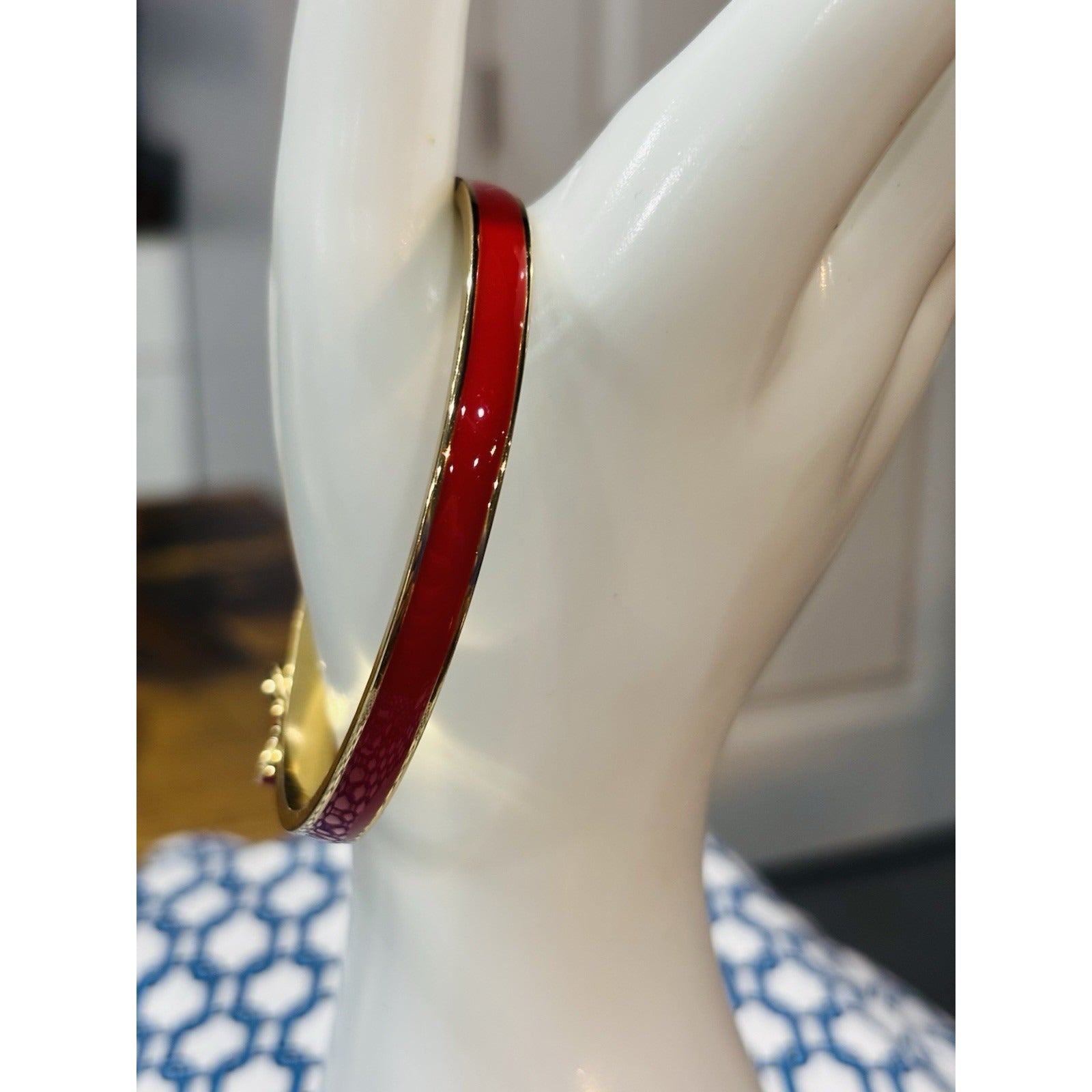 Kate Spade New York Take a Bow Red Enamel Gold Toned Bangle Bracelet Ribbon