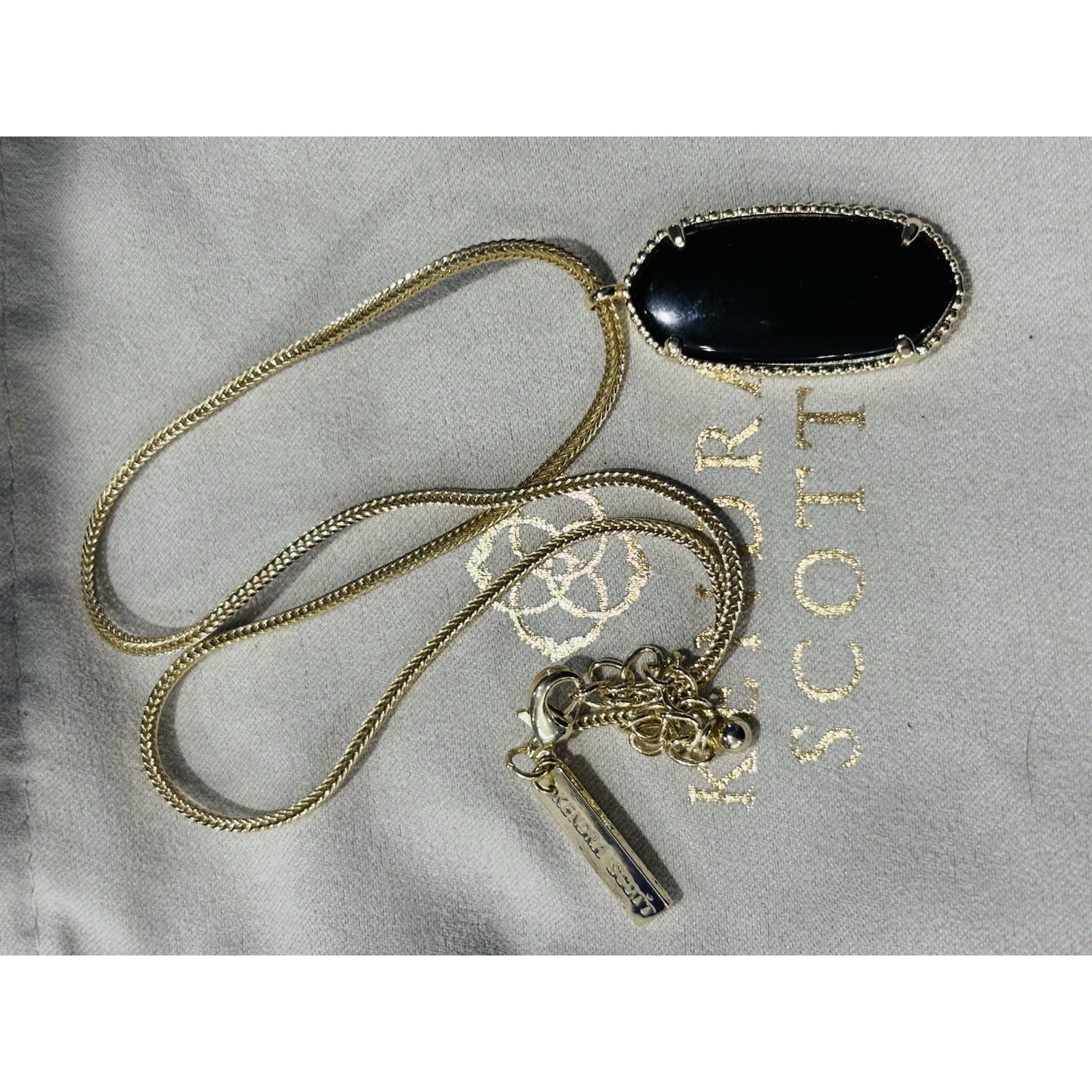Kendra Scott Gold Necklace With Black Oval Stone Pendent