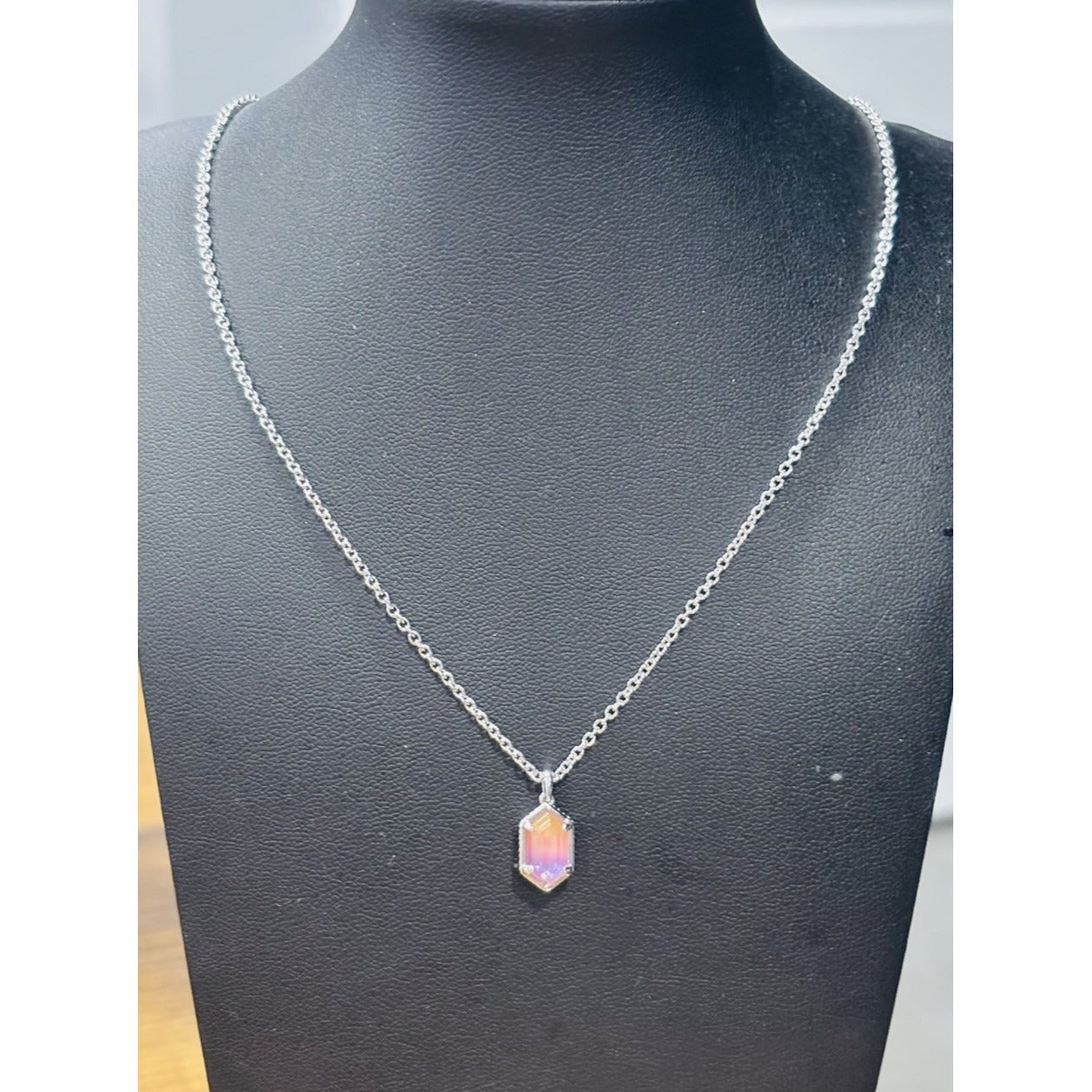 Kendra Scott NWT Hallie Silver Short Pendent Necklace In Watermelon Illusion
