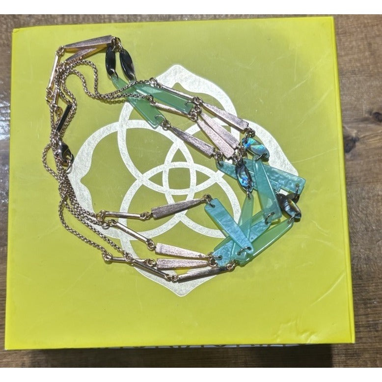 Kendra Scott Rose Gold Station Necklace In Mint Green Shell And Abalone