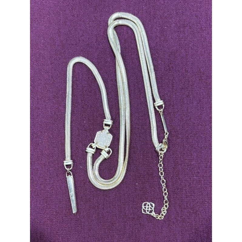 This is a Kendra Scott Starla Y Necklace in Gold featuring a white main stone. The Y-drop style necklace is elegant and stylish, making it a versatile piece of fashion jewelry suitable for various occasions.