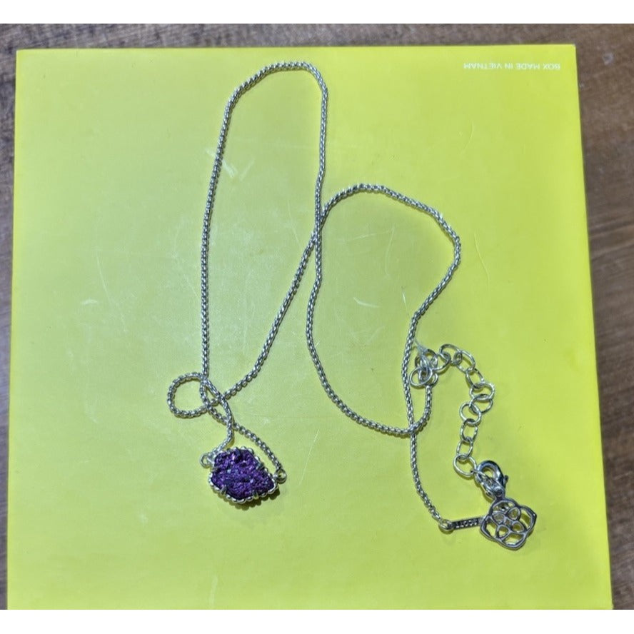 The Kendra Scott Theo Raspberry Drusy Gold Chain necklace is a stunning piece of jewelry designed for women. This necklace features a beautiful purple Drusy Quartz stone set in yellow gold plated metal, creating a striking contrast. With a chain style and a length of 9 inches, this necklace is the perfect accessory to add a pop of color and elegance to any outfit. Perfect for both casual and formal occasions, this Kendra Scott necklace is a versatile and stylish addition to any jewelry collection.
