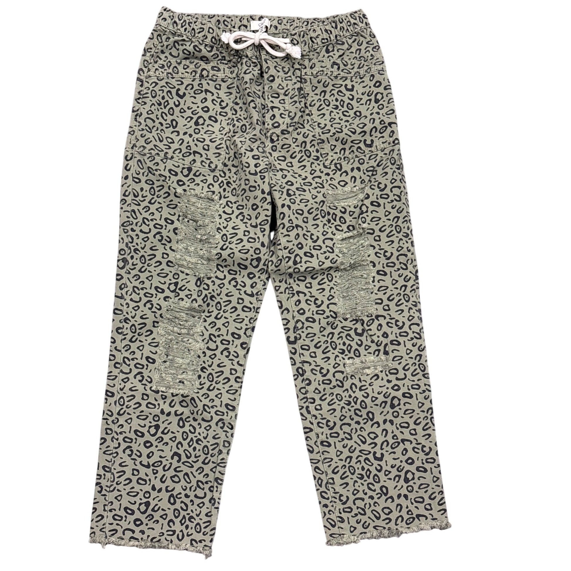 These trendy leopard print pants are both stylish and comfortable. With an elastic waistband and drawstring, they ensure a perfect fit for daily wear. The distressed patches add a unique touch, making them a versatile addition to any wardrobe.