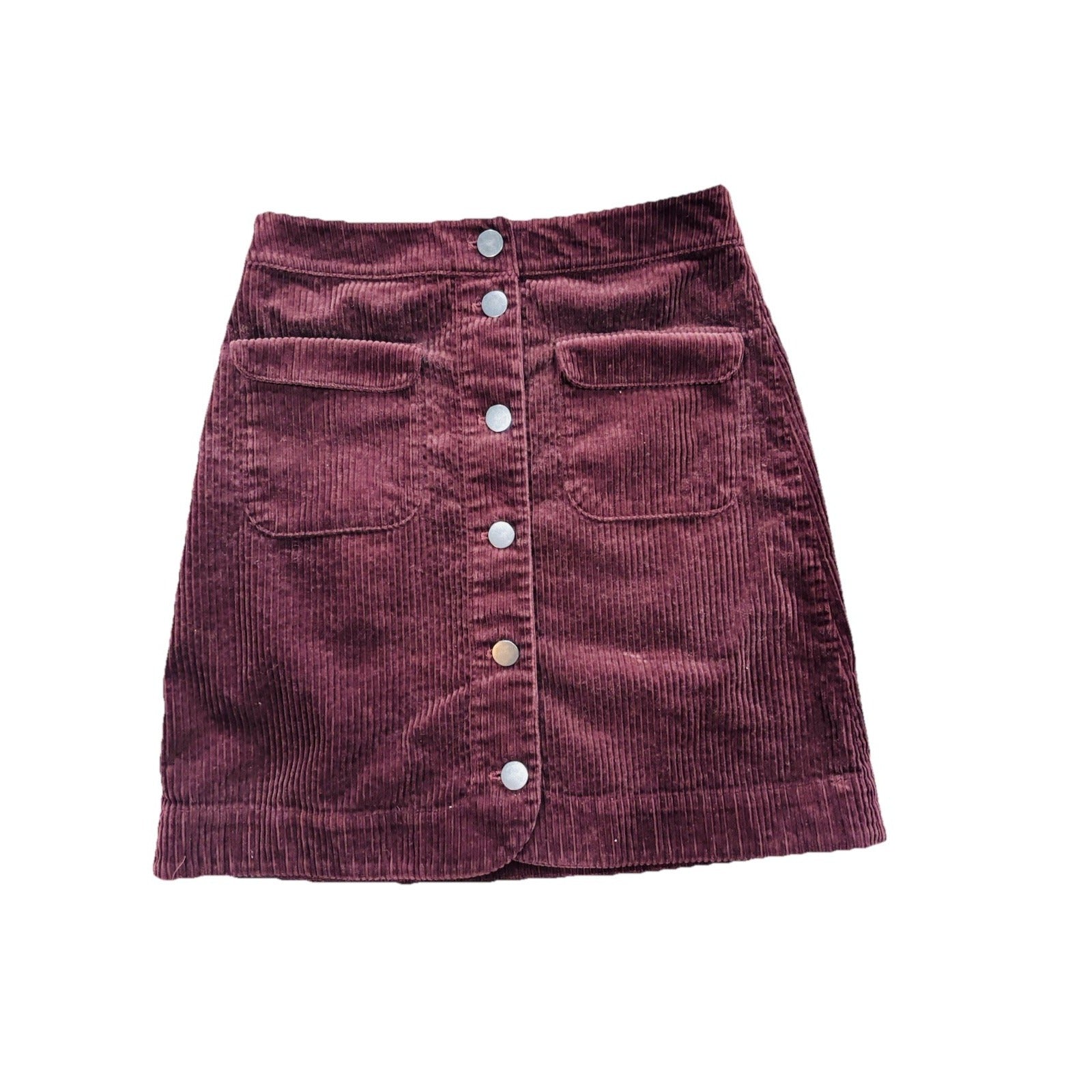 The LOFT Above the Knee Corduroy Skirt in Maroon Size 0 is a stylish and versatile addition to any woman's wardrobe. Made from a blend of cotton, polyester, and spandex, this skirt features a classic zip closure and a flattering above-the-knee length. The maroon color and dark fabric wash give it a sophisticated look, perfect for casual or travel occasions. With accents like buttons and pockets, this skirt combines style with functionality, making it a great choice for a casual Friday or any other day of the week.