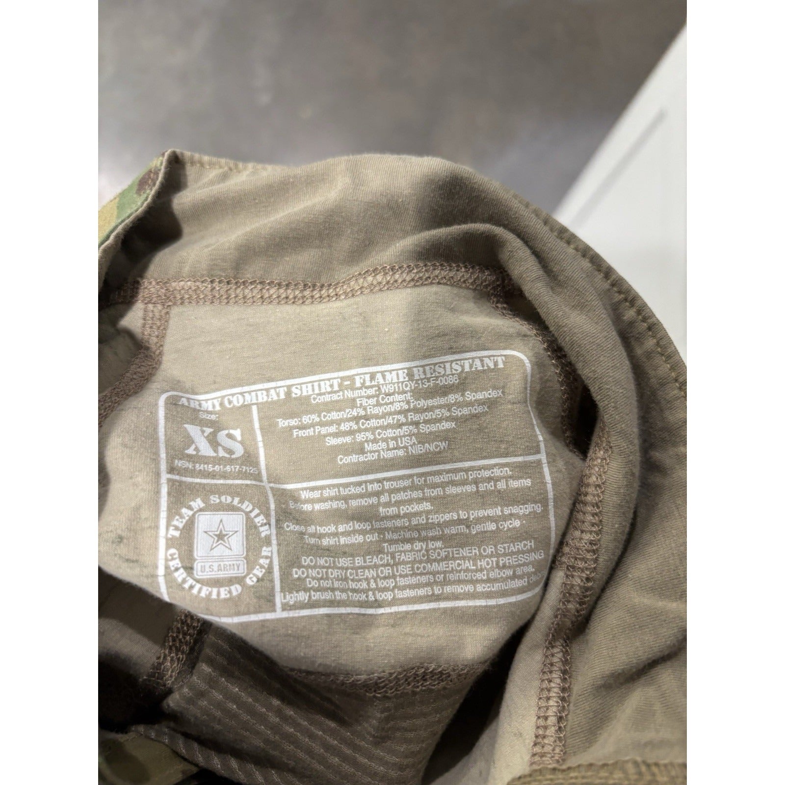 Massif Army Combat Shirt Mens XS Multicam Flame Resistant Made in USA ACS