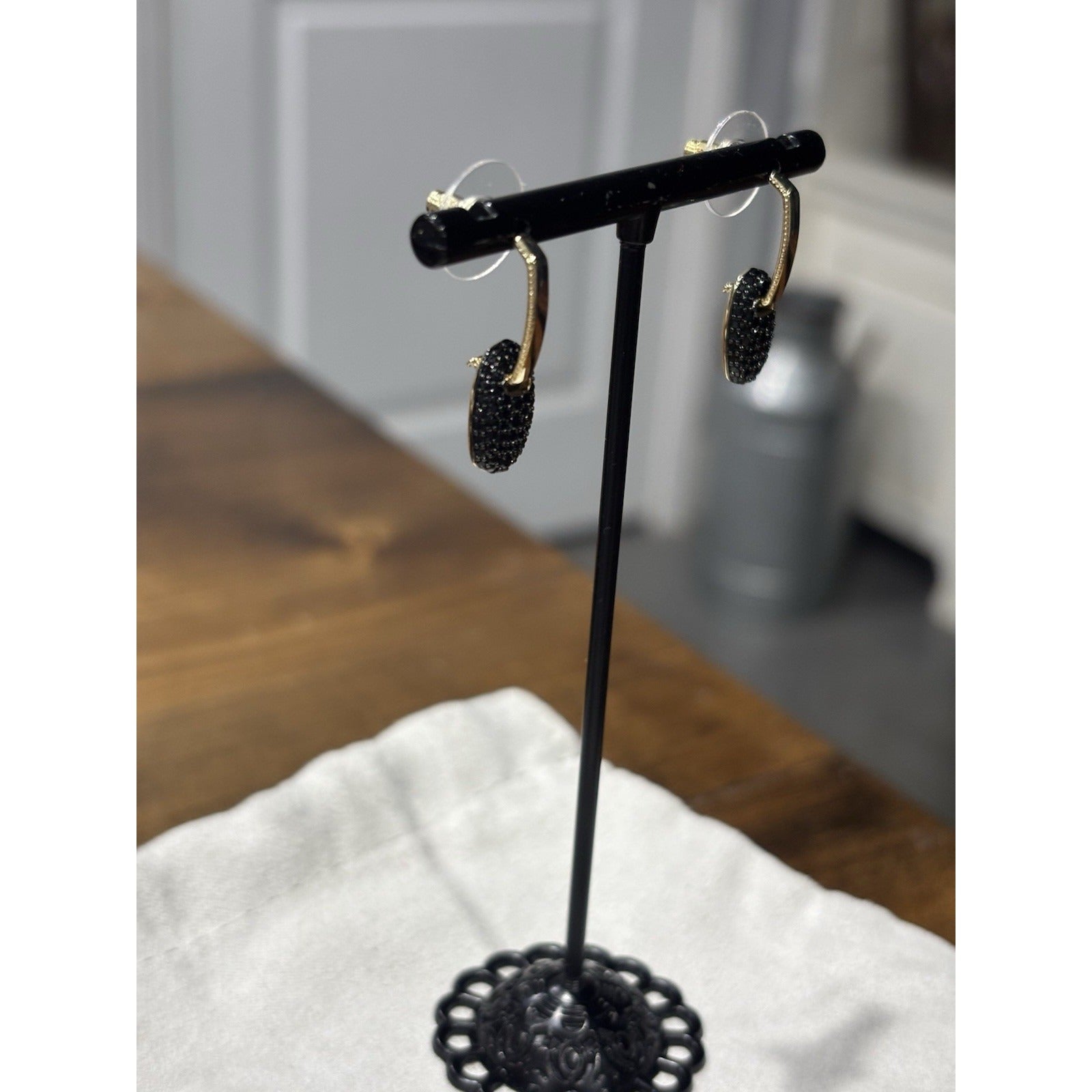 NEW Kendra Scott Bailey 14K Gold Plated Pave Huggie Earrings -Black Crystal, NWT