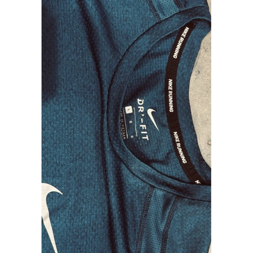 Nike Running Dri Fit Mens T Shirt Teal Mesh Vented Running Shirt Mens Large