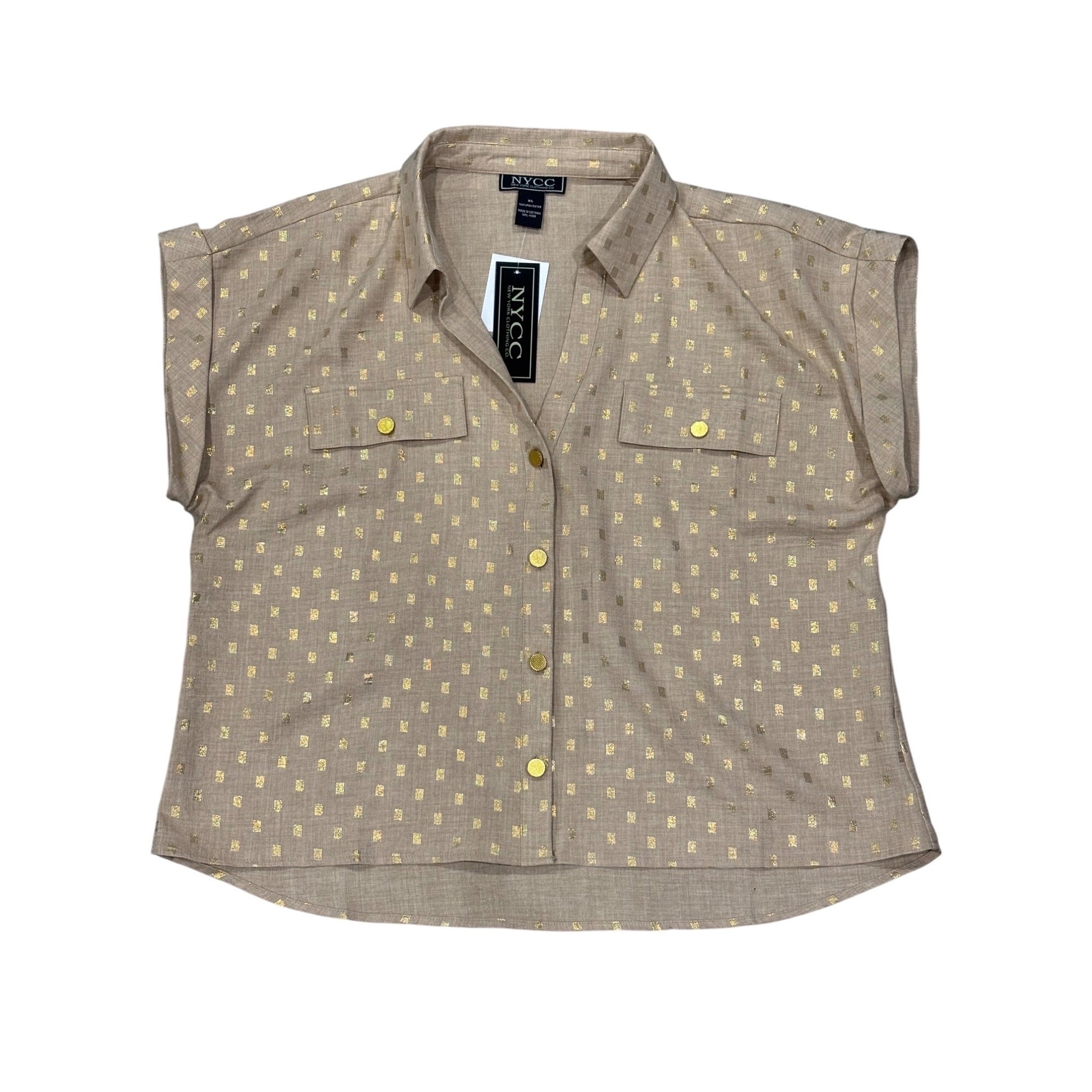 NYCC Womens Gold Dot Short Sleeve Button-Up Shirt Size XL