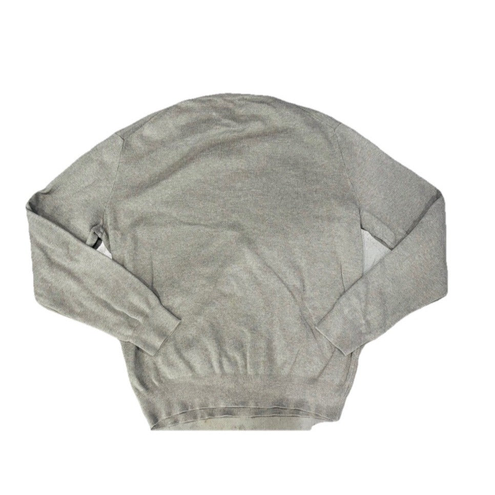 Ralph Lauren Gray Sweater V-Neck Blue Logo Lightweight Knit Size M