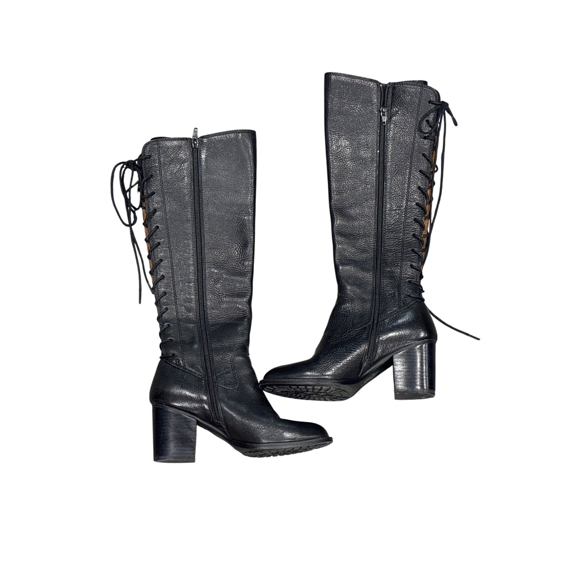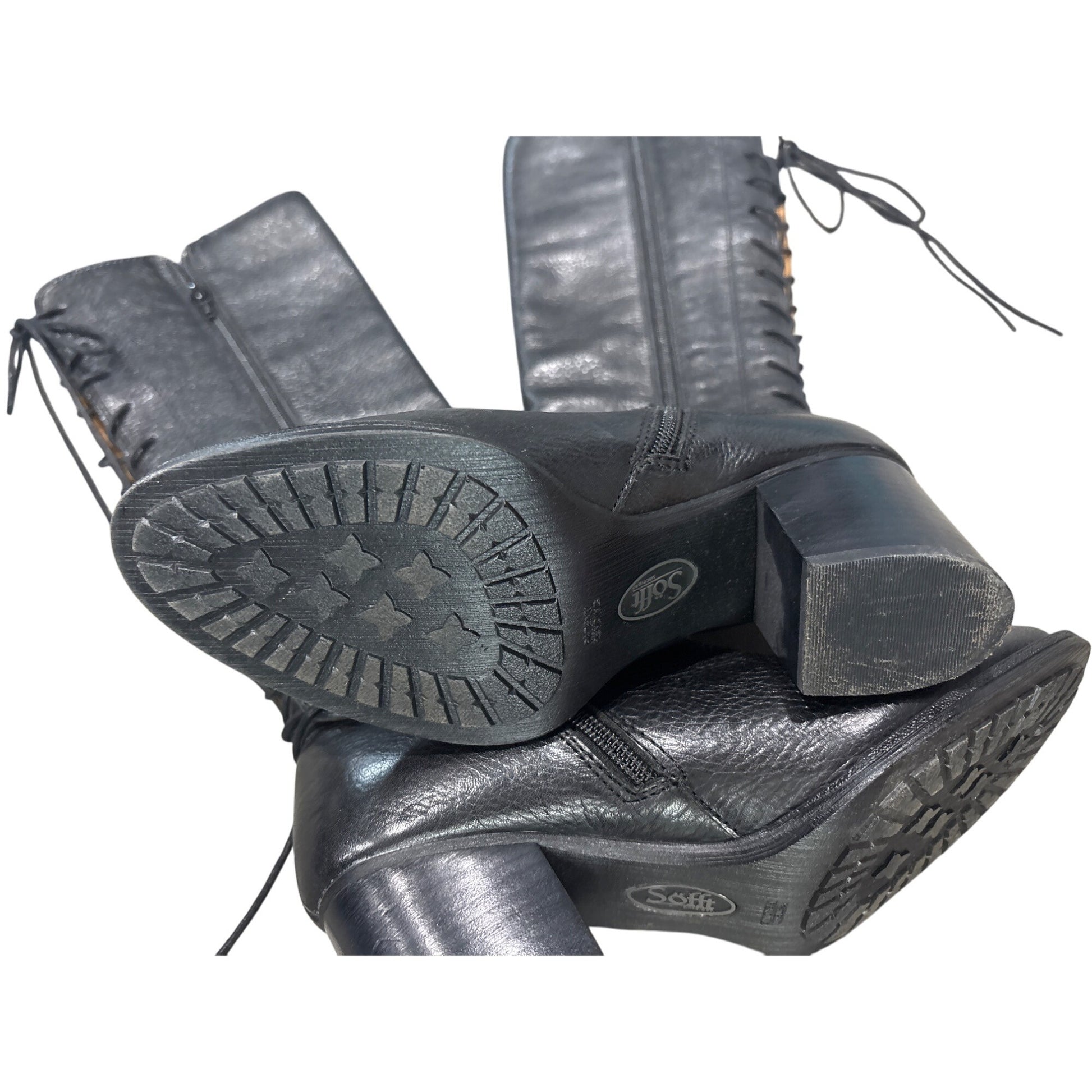 Söfft Black Leather Tall Boots With Lace-Up Back & Side Zipper Size 6