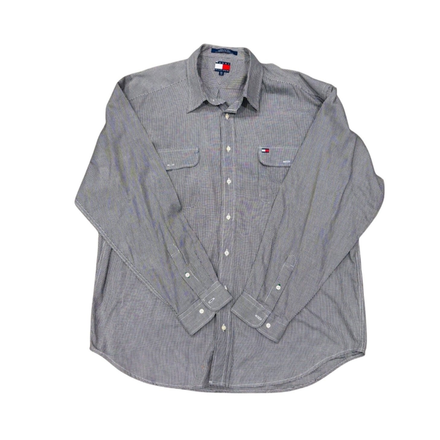 This Tommy Hilfiger shirt offers a classic gingham pattern and comfortable fit. The long sleeves and button-up design suit both casual and formal settings.