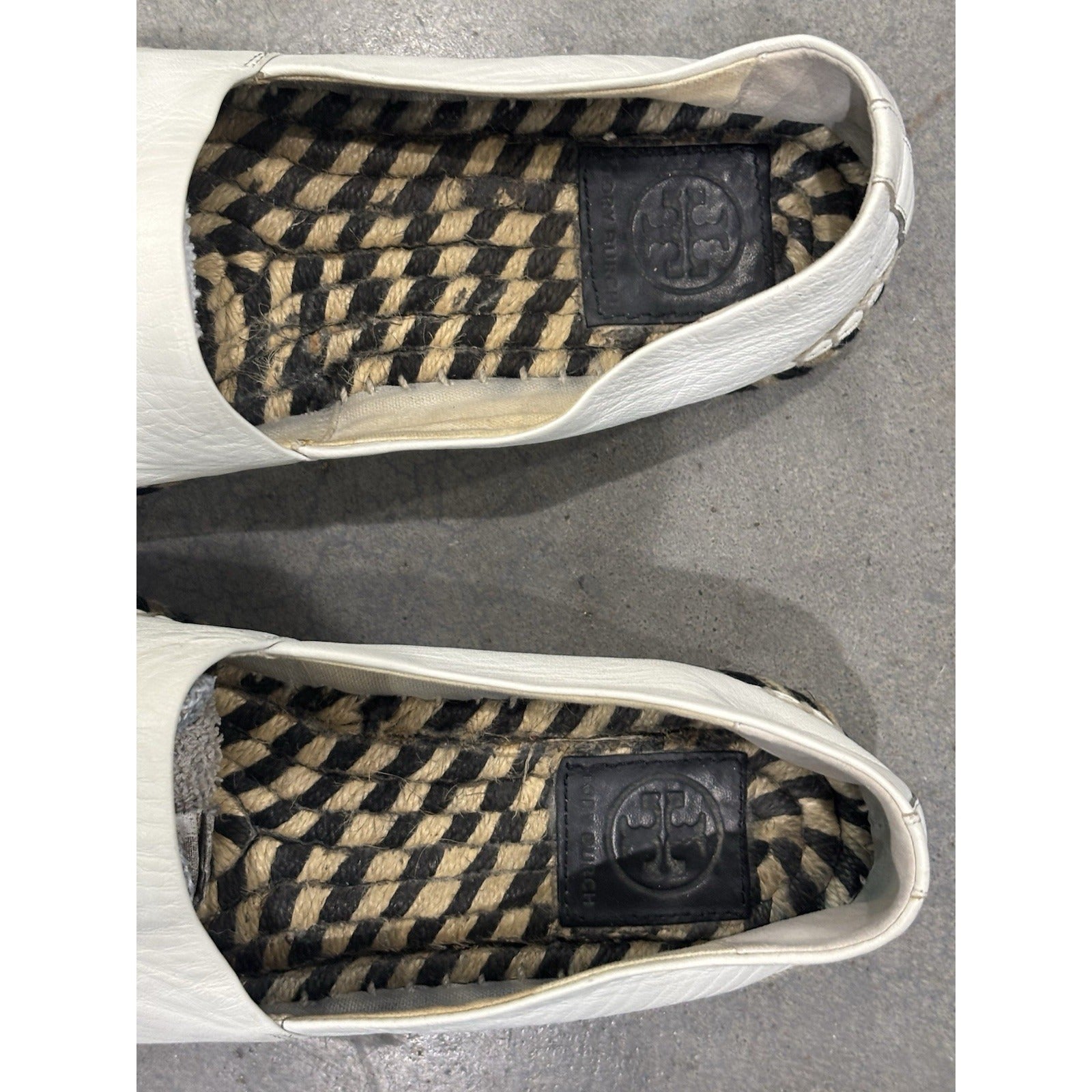 TORY BURCH Color Block Espadrilles Flat Leather Ivory/Black Slip On Shoes Sz 7.5