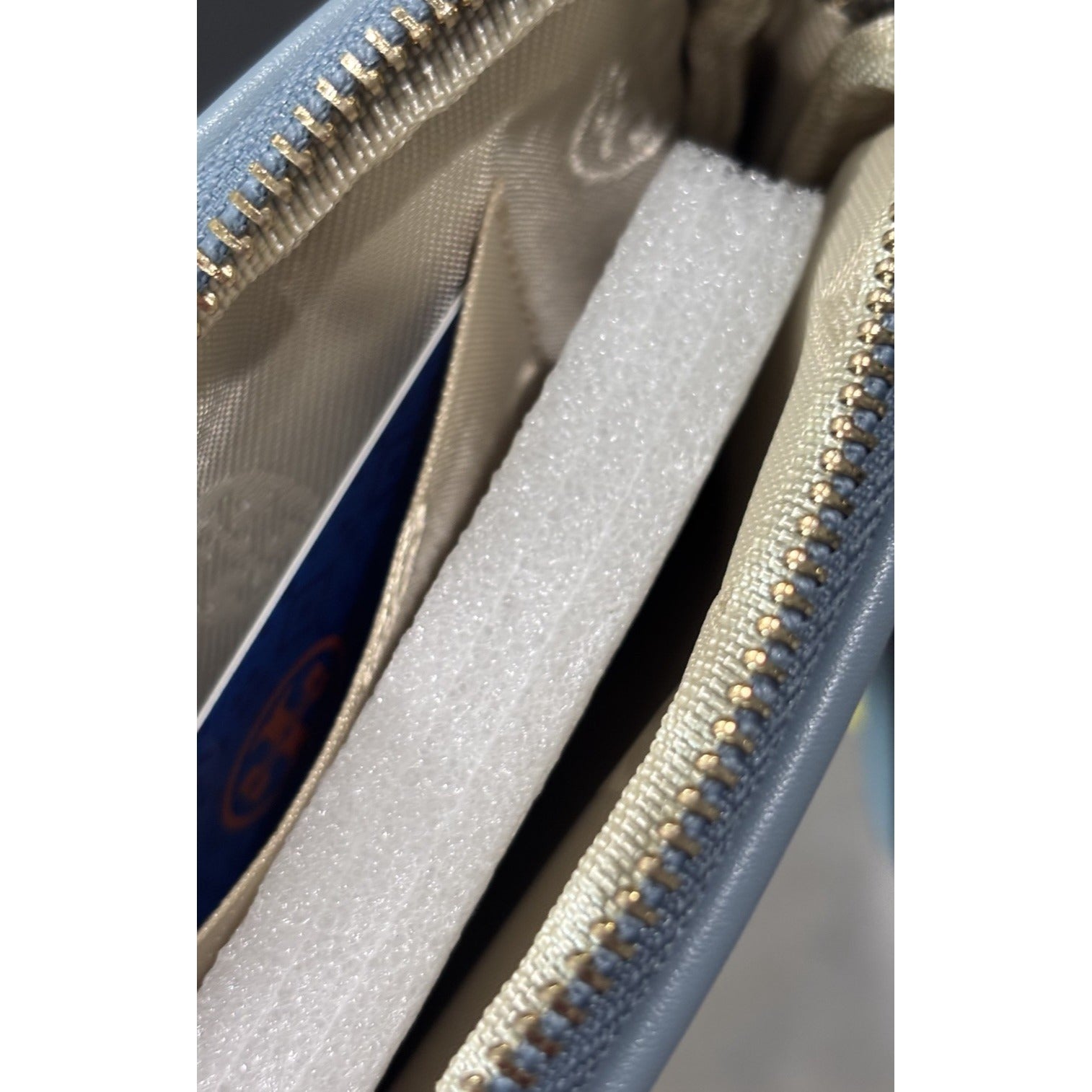 The Tory Burch Satin Wristlet in Turquoise is a stylish and practical accessory for women. Made from luxurious satin fabric, this wristlet features a beautiful blue color that adds a pop of vibrancy to any outfit. With a sleek design and convenient wristlet style, it is the perfect accessory for keeping your essentials organized in style. The Tory Burch brand ensures high quality and timeless elegance, making this wristlet a must-have for any fashion-forward woman.