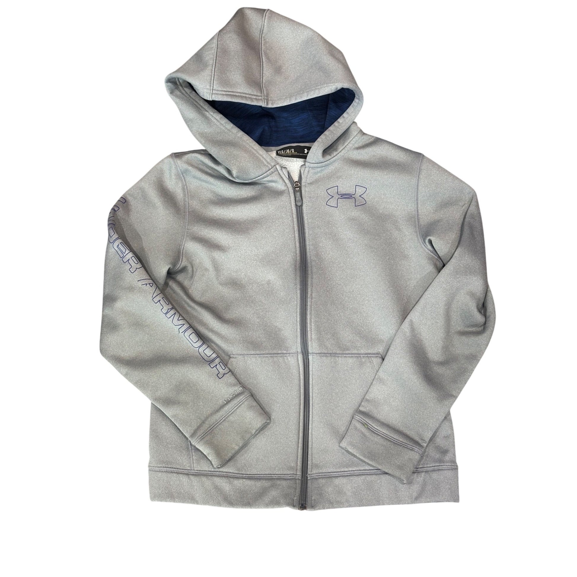 Under Armour Youth Medium Gray Full-Zip Hoodie With Logo wear shown in pictures