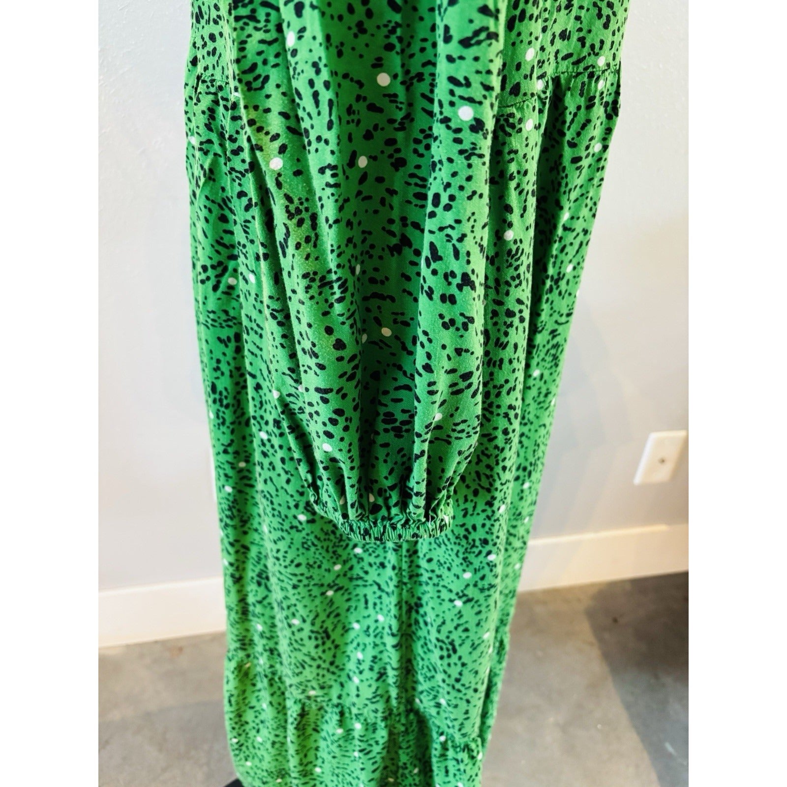 Who What Wear Long Sleeve Maxi Dress Size L Green Black Spots White Dots