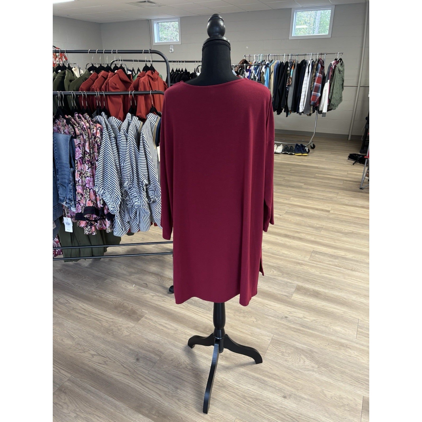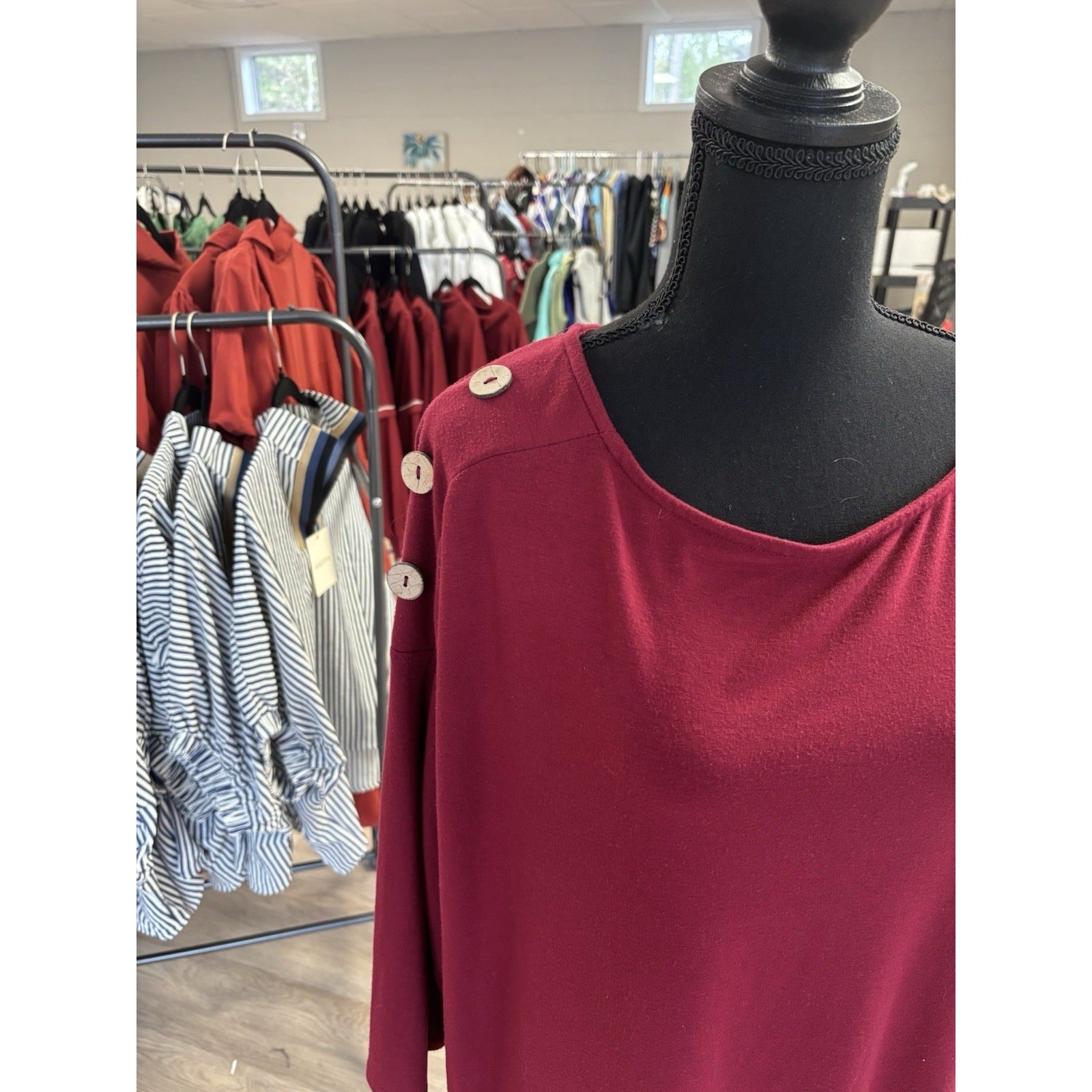 Zenana Premium Maroon Top Button Accent 3/4 Sleeve Size 2XL